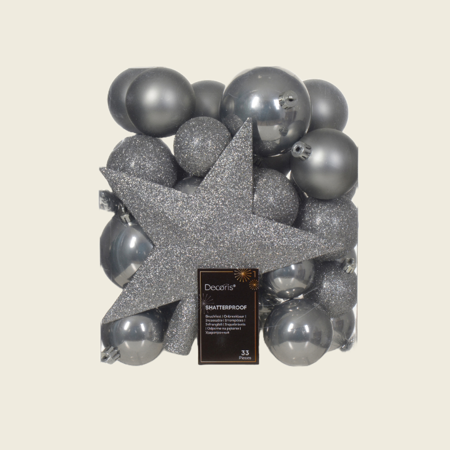 Δώστε λάμψη και πολυτέλεια στο χριστουγεννιάτικο δέντρο σας με τα χριστουγεννιάτικα στολίδια σε ασημί απόχρωση.