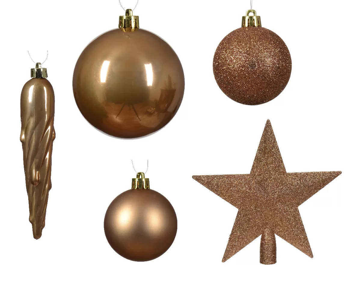 Δώστε λάμψη και πολυτέλεια στο χριστουγεννιάτικο δέντρο σας με τα χριστουγεννιάτικα στολίδια σε χρυσή απόχρωση.