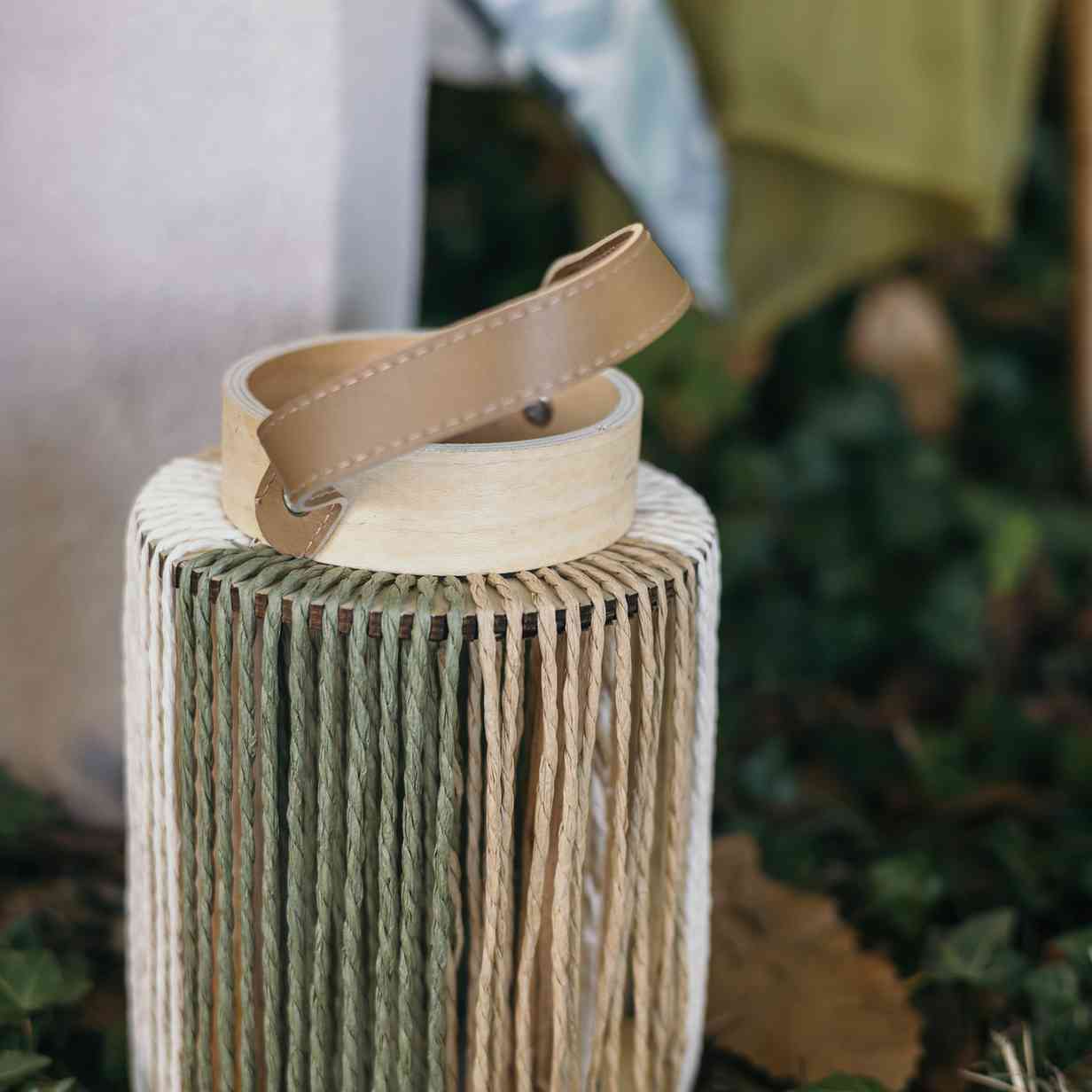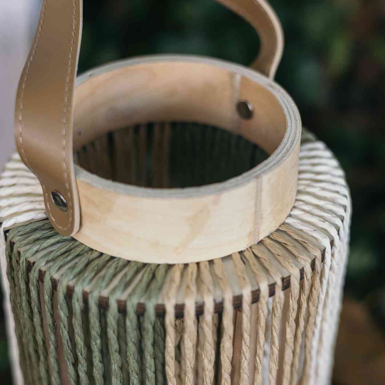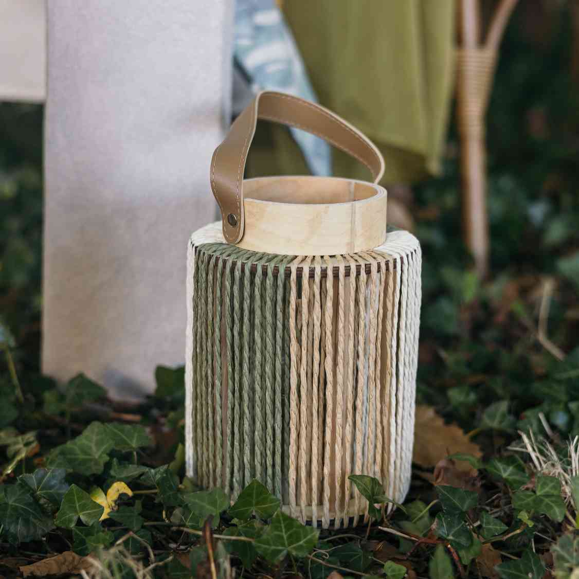 Beauty Home Φανάρι Simon Γυαλί, ξύλο και σπάγκος Μπεζ, κρεμ και β…