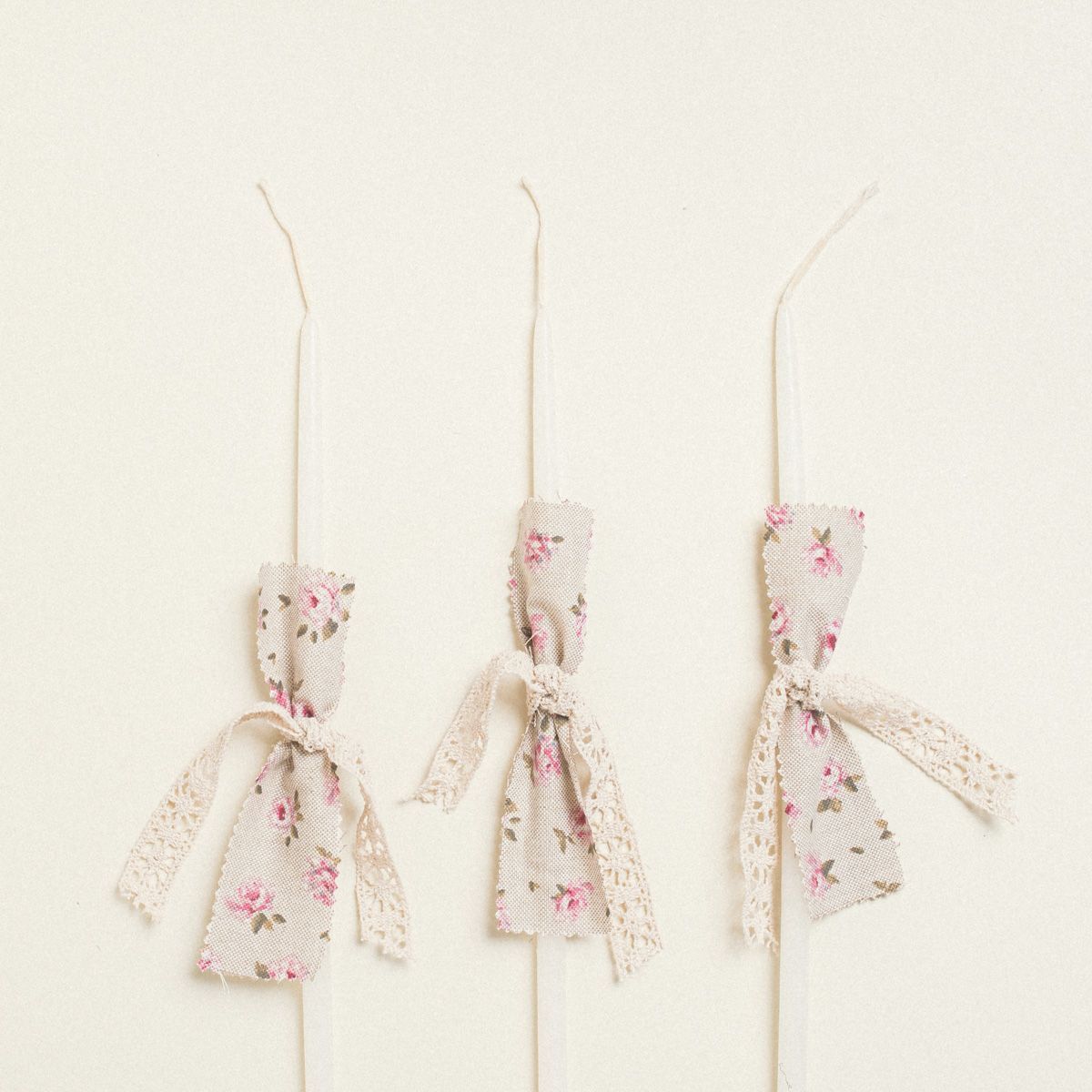 Σετ από 3 διακοσμημένα κεράκια κολυμβήθρας, ιδανικά για βάπτιση. Προσεγμένη χειροποίητη διακόσμηση με λεπτομέρειες που δίνουν κομψότητα και μοναδικότητα σε κάθε κερί.