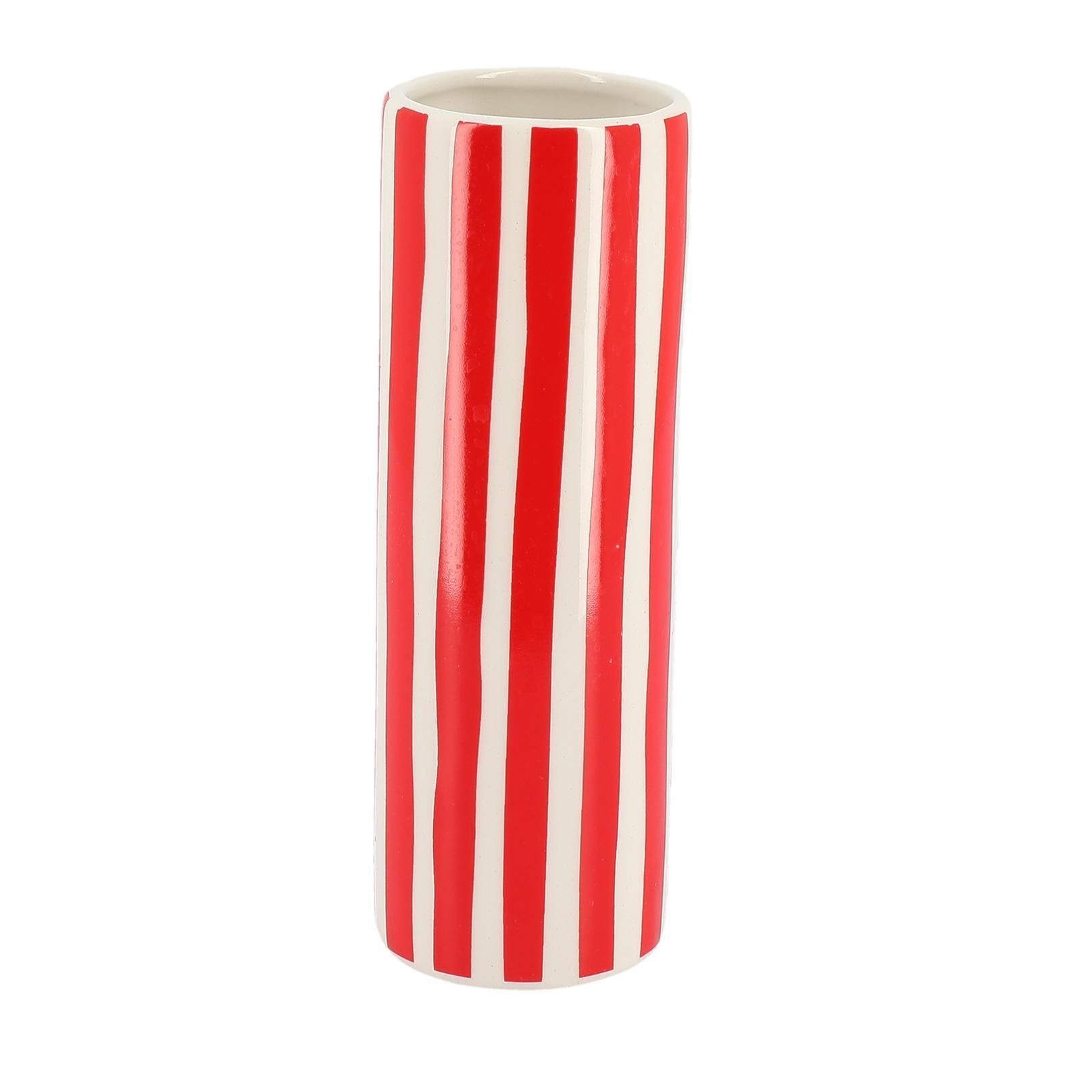 Beauty Home Κεραμικό Βάζο Délia Ριγέ Κόκκινο – Λευκό 5,5 x 16 CM