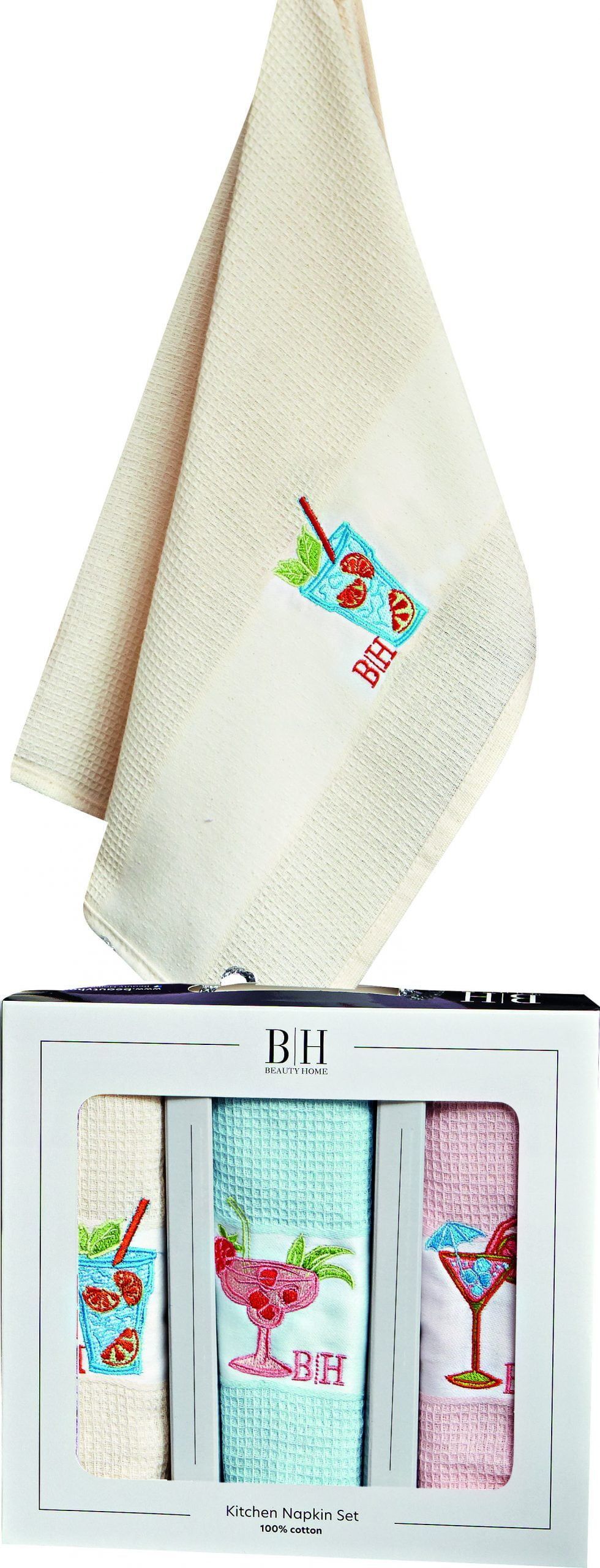 Σετ Ποτηρόπανα 3 Τεμαχίων Beauty Home– 100% Βαμβακερά με Κέντημα & Συσκευασία Δώρου