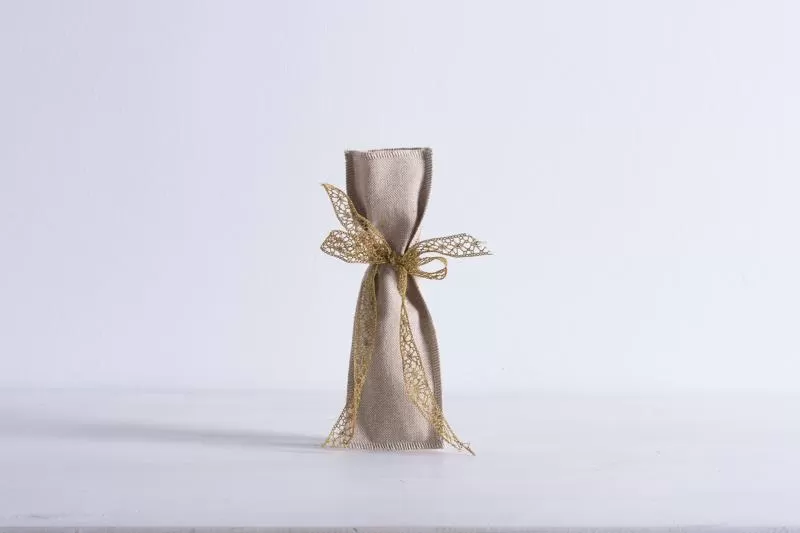 Υφασμάτινο Πουγκί Διαστάσεις 6 x 19 cm Σύνθεση 80% Βαμβάκι – 20% Polyester Το υφασμάτινο πουγκί μπορεί να χρησιμοποιηθεί για την δημιουργία μπομπονιέρας Γάμου και Βάπτισης ή ως υλικό συσκευασίας για κοσμήματα, γούρια και χειροποίητα ειδή. Το ιδιάιτερο μακρόστενο σχήμα του αποτελεί βάση για μια κομψή και πρωτότυπη μπομπονιέρα. Το πουγκί είναι υλικό που απελευθερώνει την δημιουργικότητα, μπορεί να συνδυαστεί με κορδόνια, κορδέλες και άλλα στοιχεία. Το πουγκί είναι κατασκευασμένο με ύφασμα πιστοποιημένο με Oeko-tex Standard 100 Product class II Σημαντική διευκρίνηση – Το προϊόν αφορά μόνο στο πουγκί, τα υλικά που χρησιμοποιήθηκαν αποτελούν μέρος της παρουσίασης του προιόντος και δεν συμπεριλαμβάνονται.