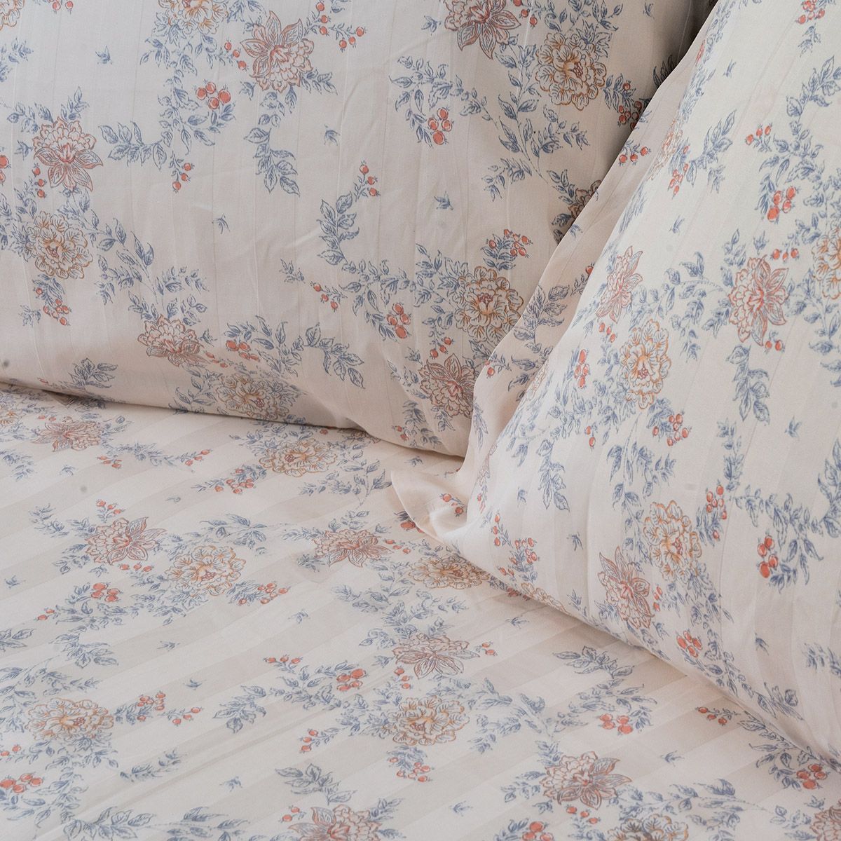 Σεντόνια 300TC Βαμβακοσατέν Ριγέ με Λουλούδια – Πολυτέλεια & Απόλυτη Άνεση