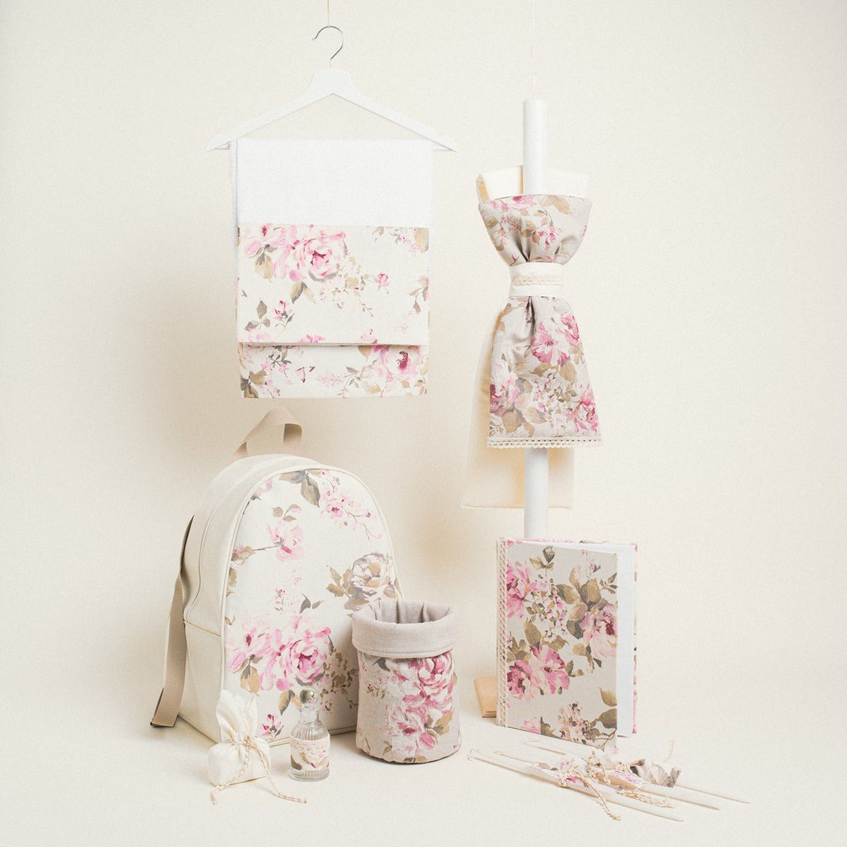 Ένα κομψό και ρομαντικό σετ βάπτισης με κλασικό φλοράλ σχέδιο, ιδανικό για μια βάπτιση γεμάτη φυσική ομορφιά και εκλεπτυσμένη ατμόσφαιρα.