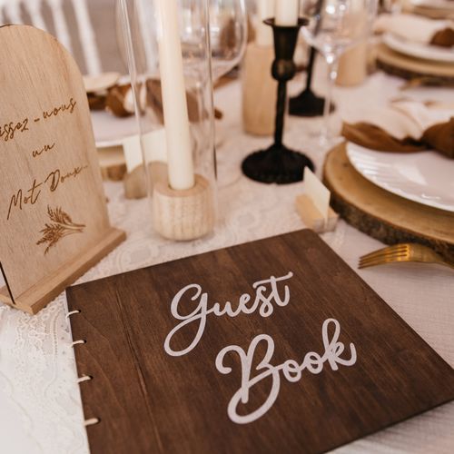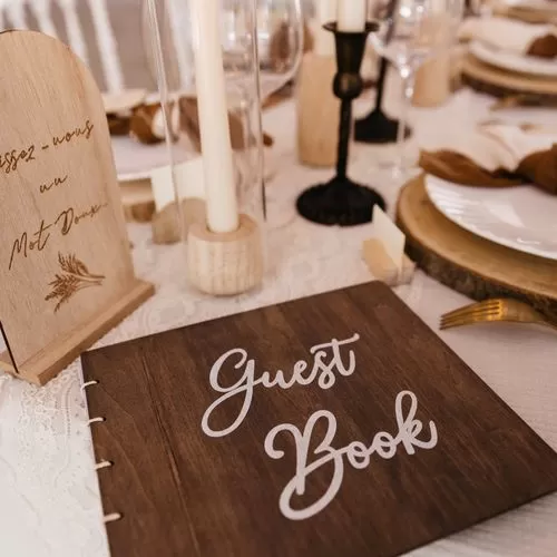 Ξύλινο βιβλίο ευχών 22 x 19 cm με 40 σελίδες, ιδανικό για γάμους, βαπτίσεις και ξεχωριστές εκδηλώσεις. Φτιαγμένο από ποιοτικό ξύλο, προσφέρει μια κομψή και φυσική αίσθηση, ενώ οι σελίδες του παρέχουν αρκετό χώρο για ευχές και μηνύματα από τους καλεσμένους σας. Ένα ιδιαίτερο αναμνηστικό που θα μείνει για πάντα.