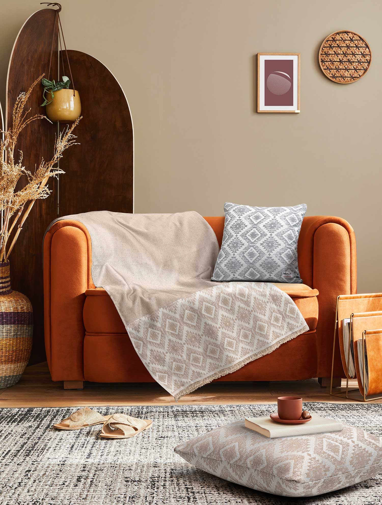 Τα ριχτάρια και διακοσμητικά μαξιλάρια της COUTURE collection της MADI σχεδιασμένα απο βαμβακερά νήματα με καλοκαιρινά patterns και boho λεπτομέρειες προσδίδουν μια αίσθηση φρεσκάδας και αναζωογόνησης στον χώρο σας. Οι ζωηροί χρωματικοί συνδυασμοί και τα γεωμετρικά σχέδια δημιουργούν έναν ατμοσφαιρικό χώρο με αέρα από ανατολή. Είτε χρησιμοποιούνται στο σαλόνι, την αυλή ή την κρεβατοκάμαρα, αναβαθμίζουν την αισθητική και προσφέρουν άνεση με στυλ.