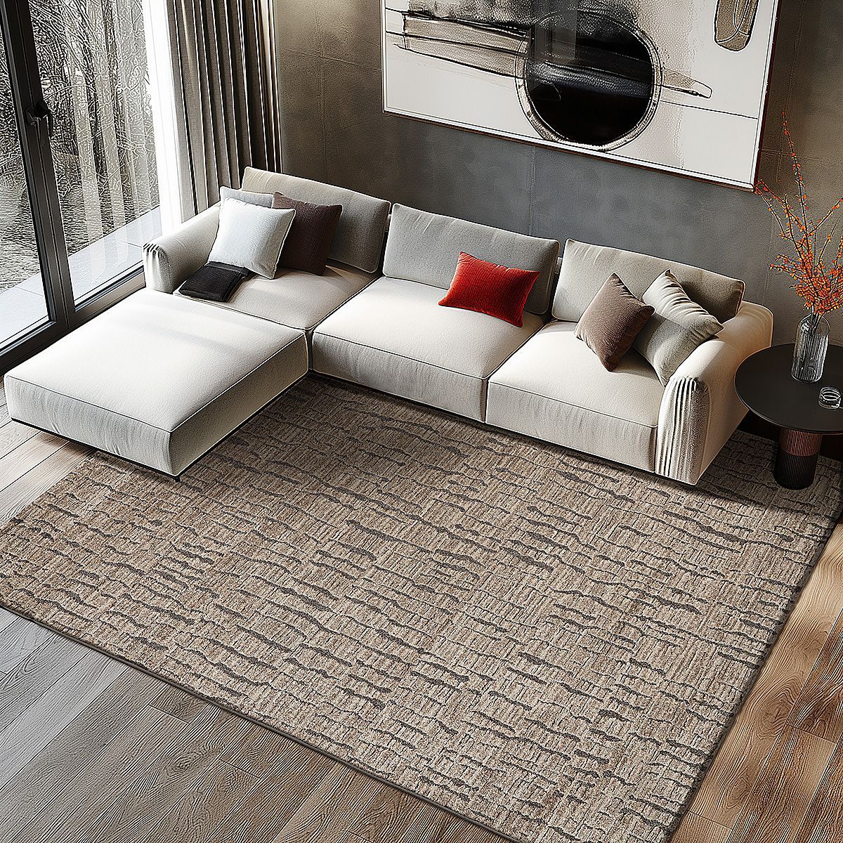 Η αναγλυφή υφή τους δημιουργεί μια οπτική διάσταση, ενισχύοντας την αίσθηση της πολυτέλειας και της ζεστασιάς. Το μαλακό τους πέλος προσφέρει ευχάριστη αίσθηση κάτω από τα πόδια και δημιουργεί μια άνετη και φιλόξενη ατμόσφαιρα.