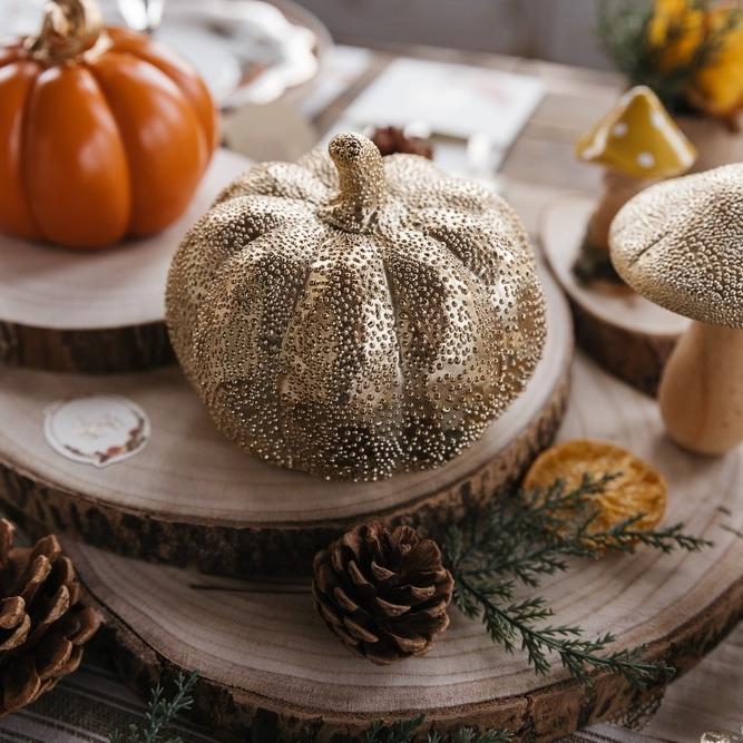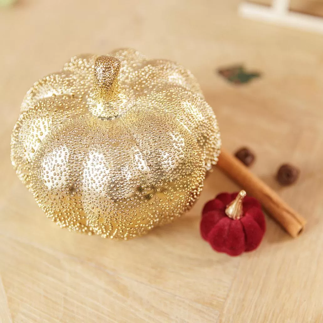 Beauty Home Κεραμική κολοκύθα χρυσή με ανάγλυφο σχέδιο Ø12 x 10.5 cm