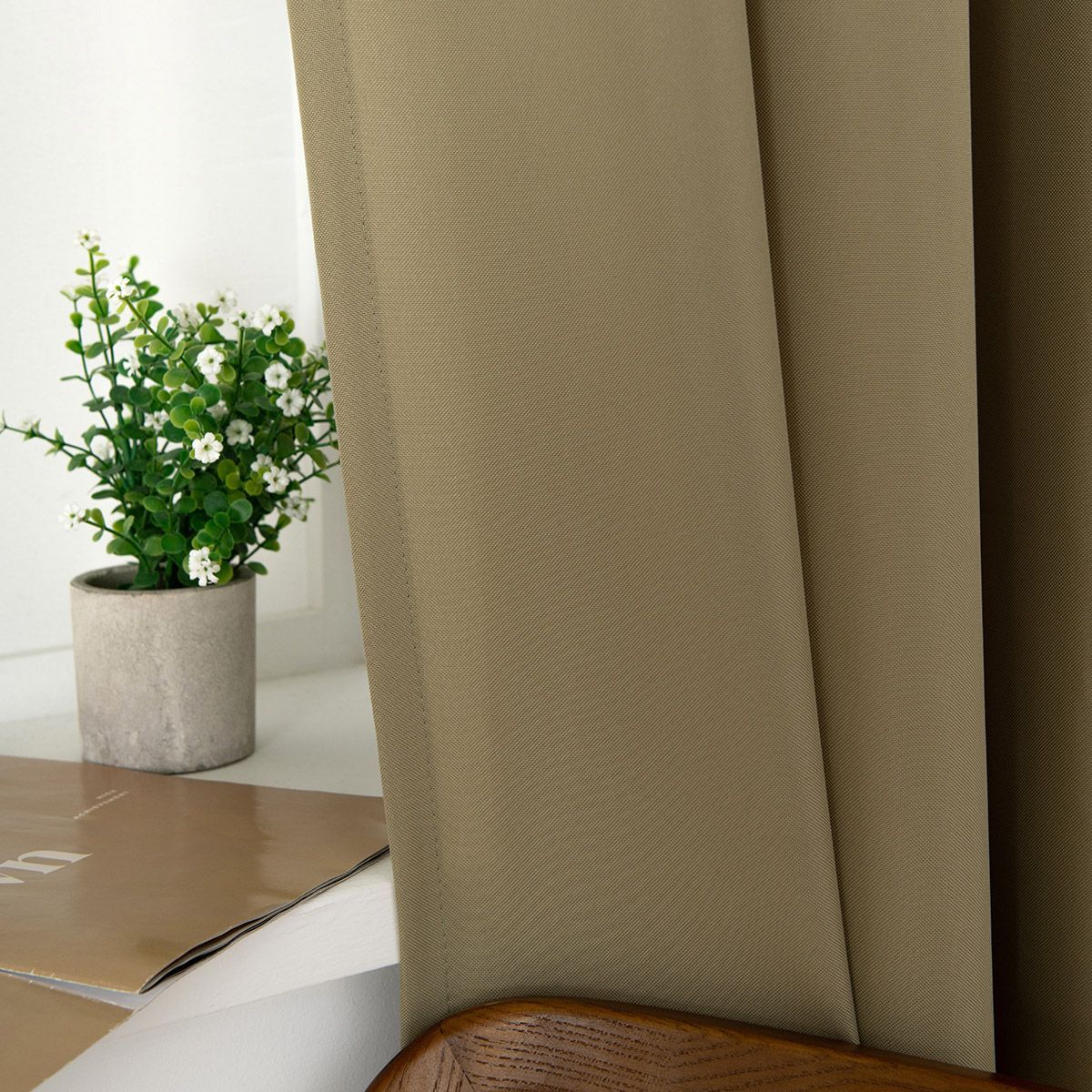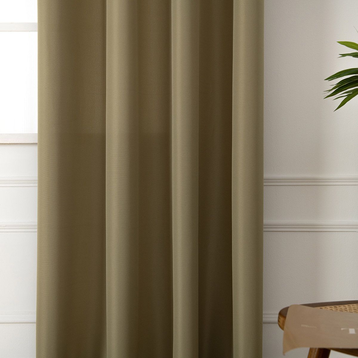 Κουρτίνα εσωτερικού χώρου, μονόχρωμη σε λαδί απόχρωση. Κατασκευασμένη από 100% polyester και ενσωματωμένα τρουκς για εύκολη τοποθέτηση. Το ύφασμα είναι μεσαίας σκίασης. Διακοσμήστε την σε όποιο χώρο του σπιτιού σας επιθυμείτε και δημιουργήστε ένα ξεχωριστό στυλ.