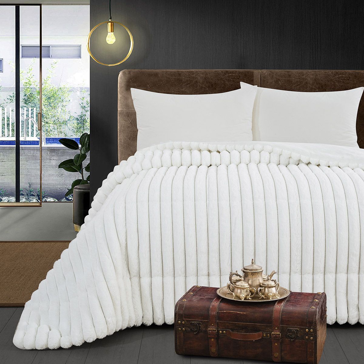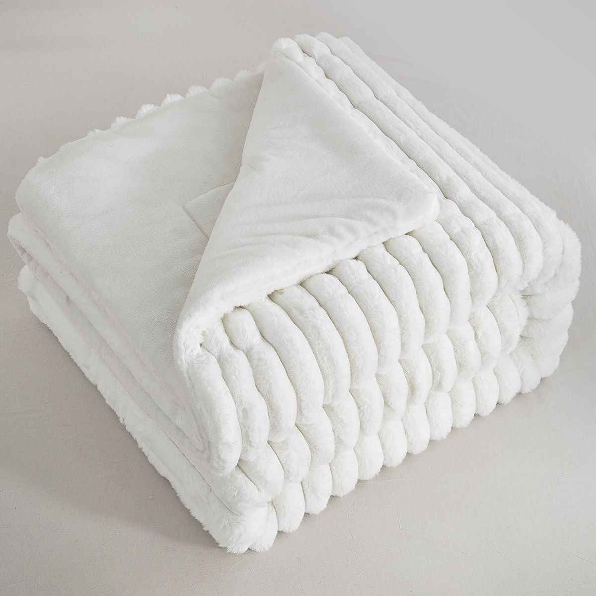Το νέο κουβερτοπάπλωμα της Beauty Home με γούνα σε αποχρώσεις λευκού, μπεζ εκρού και γκρι είναι η επιτομή της κομψότητας και της ζεστασιάς. Η επάνω πλευρά είναι επενδυμένη με απαλή, αφράτη γούνα, η οποία προσφέρει αίσθηση πολυτέλειας και ζεστασιάς,και ιδιαίτερη άνεση, ιδανική για τις πιο κρύες εποχές του χρόνου. Η κάτω πλευρά είναι από φλις, ένα υλικό απαλό και φιλικό προς το δέρμα, που κρατά τη θερμότητα και δημιουργεί ένα αίσθημα θαλπωρής.