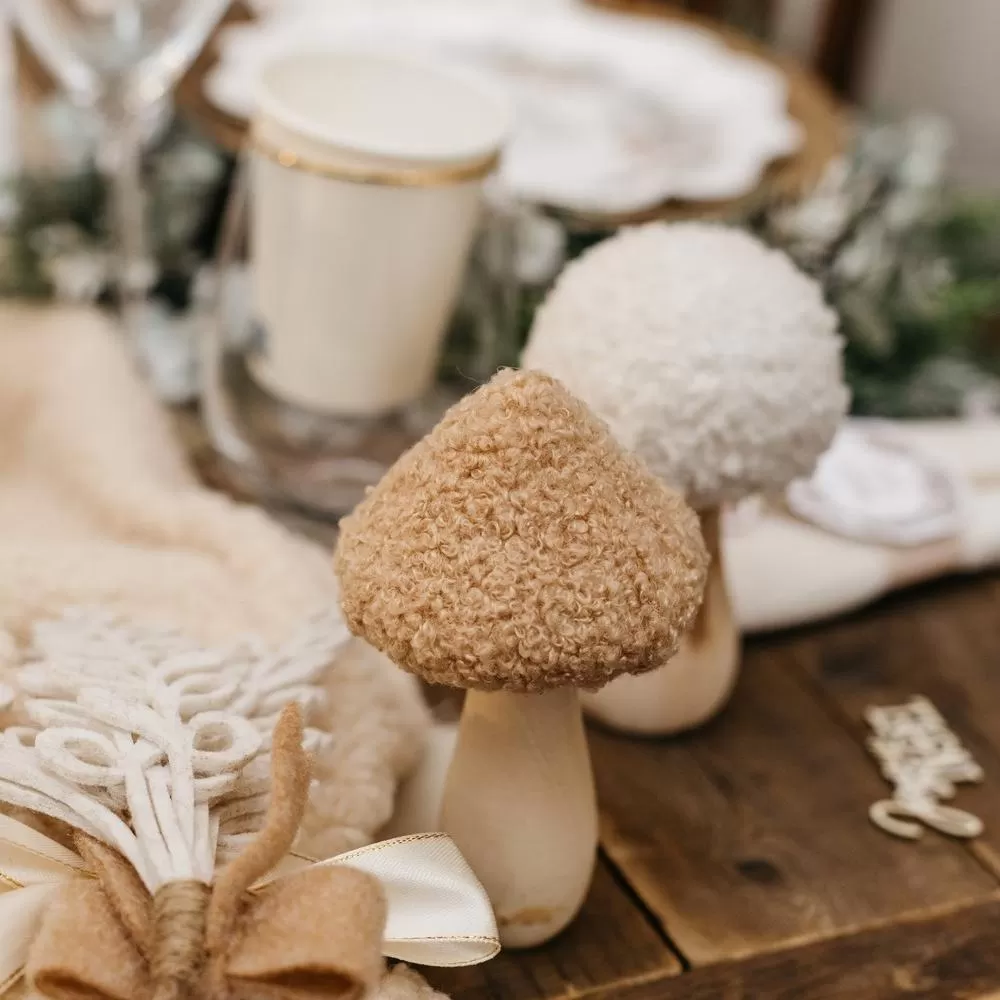 Beauty Home Μανιτάρι ξύλινο μπουκλέ μπεζ Ø7.5 x 13.5 cm